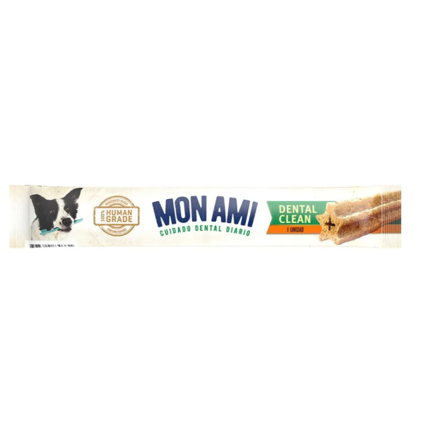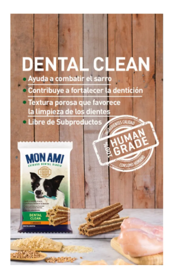 Barra Dental para Perros elaborada con Carne Fresca de Pollo. Dental Clean es una barrita de cuidado dental sabrosa, de forma estrellada y fundamental para asegurar dientes fuertes, sanos y mas limpios. Con solo un Dental Clean por día tu perro conseguirá una rutina de prevención contra enfermedades bucales, además de relajarse a través de la masticación.