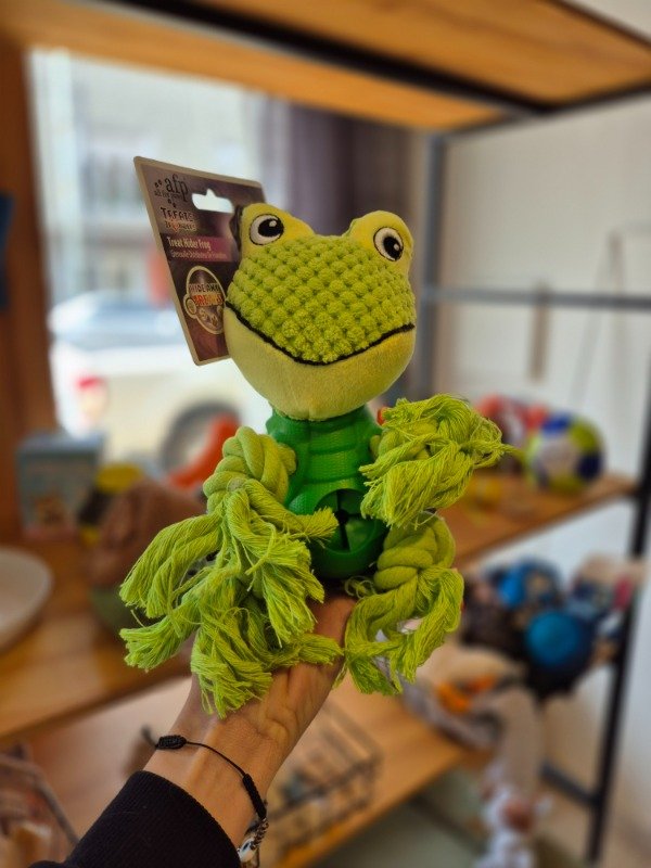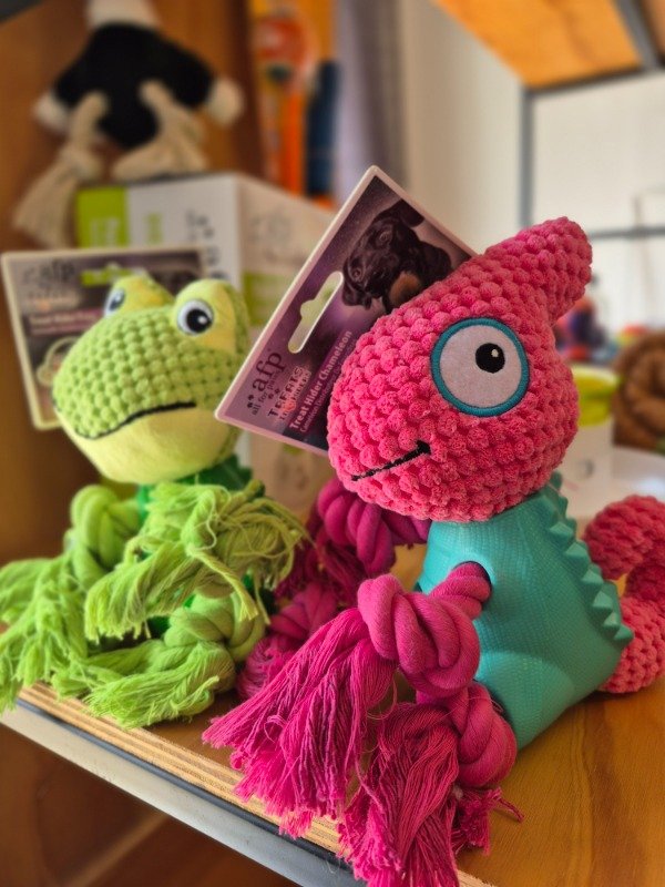El peluche Dispenser de All For Paws combina peluche, soga y chifle para estimular todos los sentidos de tu mascota mientras juega y recibe premios.
